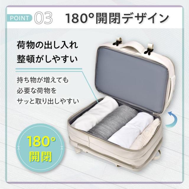 ・180度開閉するため、荷物の整理が簡単