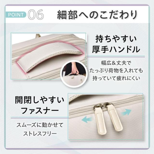 ・厚みのあるクッションストラップで方への負担を均等に分散