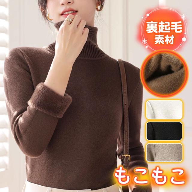 裏起毛 ニット セーター レディース 秋 冬 厚手 長袖 ハイネック 蓄熱 保温 裏ファー トップス ボア 防寒 極暖 インナー