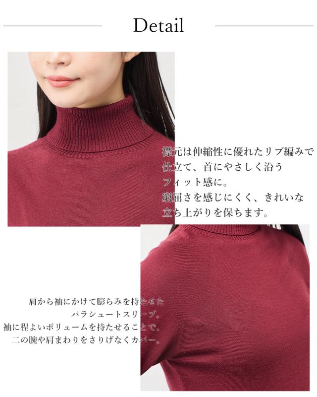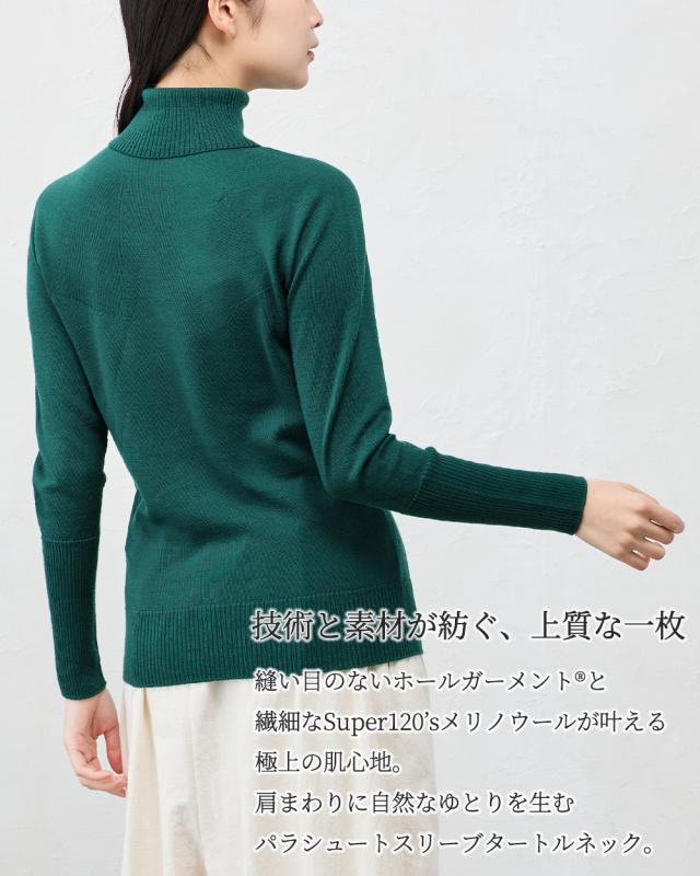 【ホールガーメント】3D KNIT 日本製 メリノウール パラシュートタートルネック ニット セーター プルオーバー 長袖 レディース ハイネック 長袖ニット トップス ウール100 毛100 30代 40代 50代 60代 秋 冬 暖かい 自社製 カジュアル ナチュラル 部屋着 重ね着 レイヤード