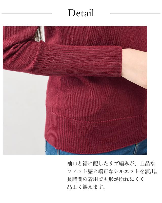 | 商品詳細/その他 | 上質なメリノウール(Super120’s)を使用した日本製セーター。ホールガーメント?製法で一枚の糸から立体的に編み上げ、なめらかで快適な着心地です。 |
