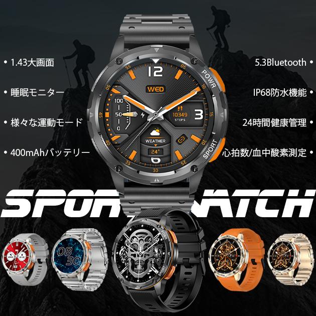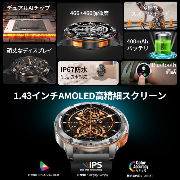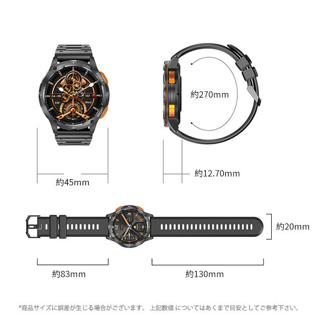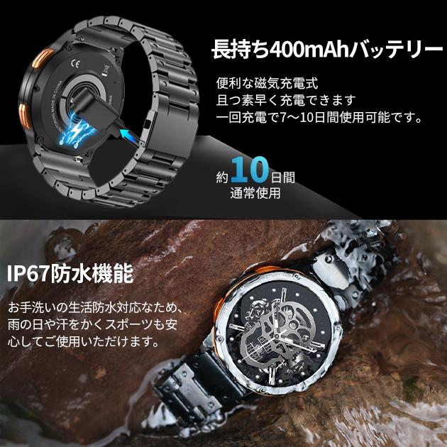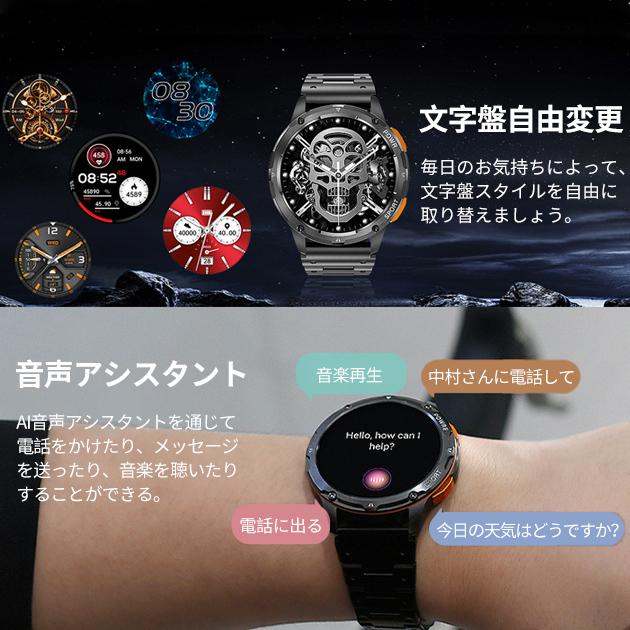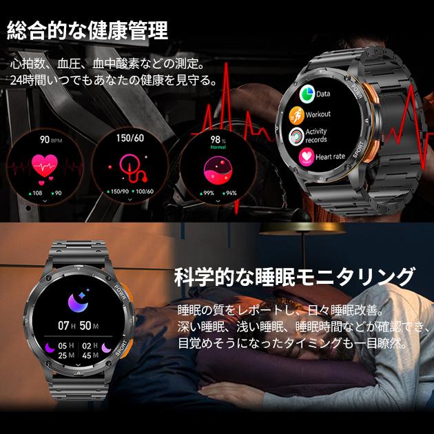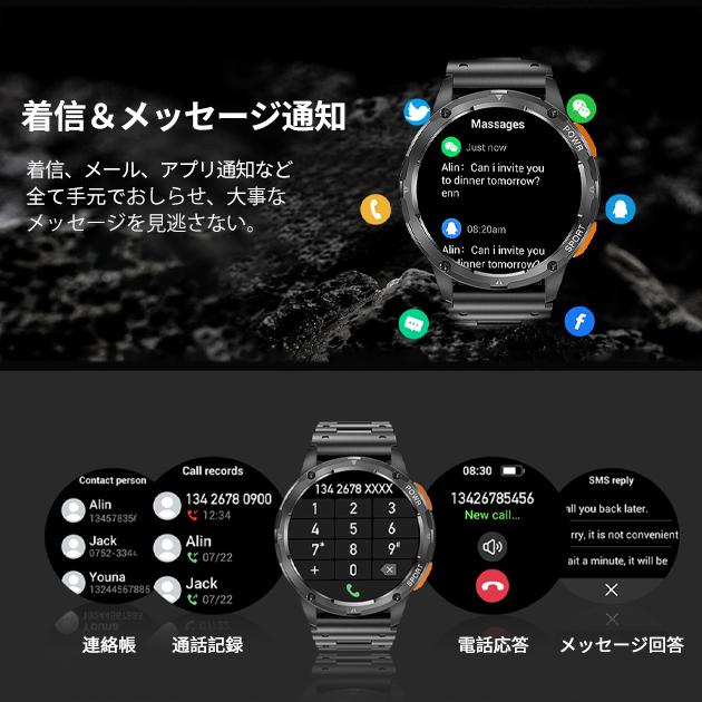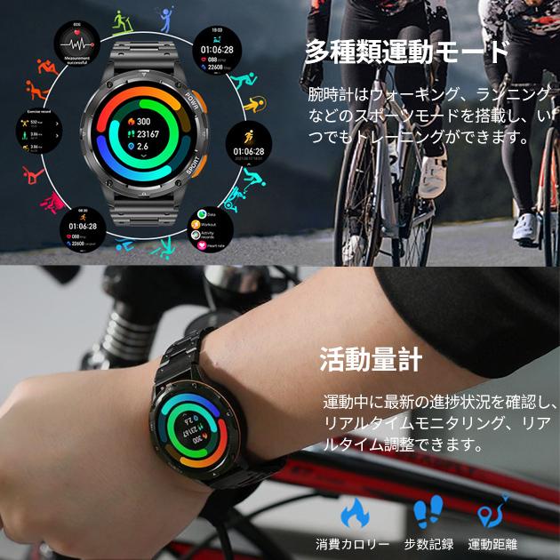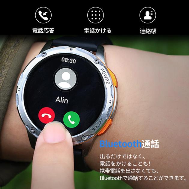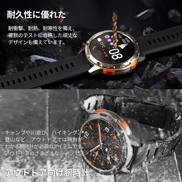 スマートウォッチ 軍用規格 丸型 軍用 スマート ウォッチ 体温測定 血圧 スポーツウォッチ 通話機能 メンズ iPhone対応 着信&line通知