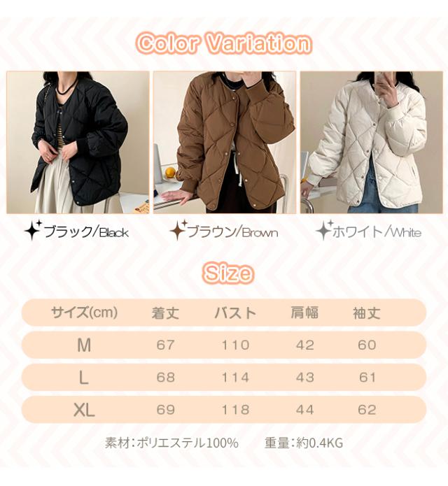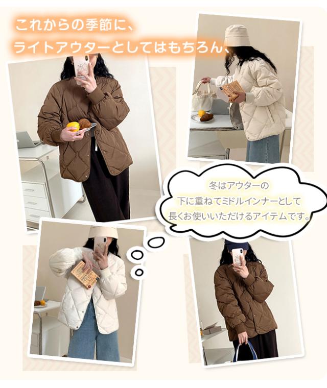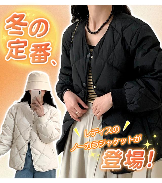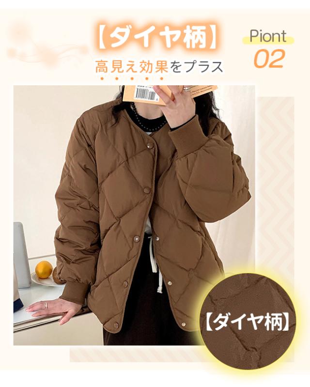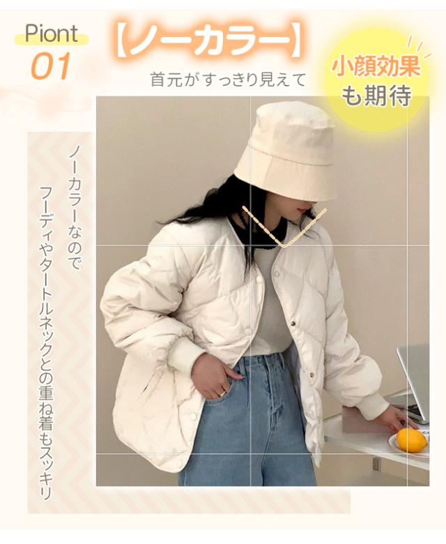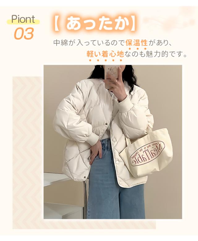 【100 円 OFFクーポン】新作 中綿ジャケット アウター レディース コート 秋冬 ジャケット ブルゾン ショート丈 ノーカラー 無地 防寒 カジュアル ゆったり 中綿コート 軽い