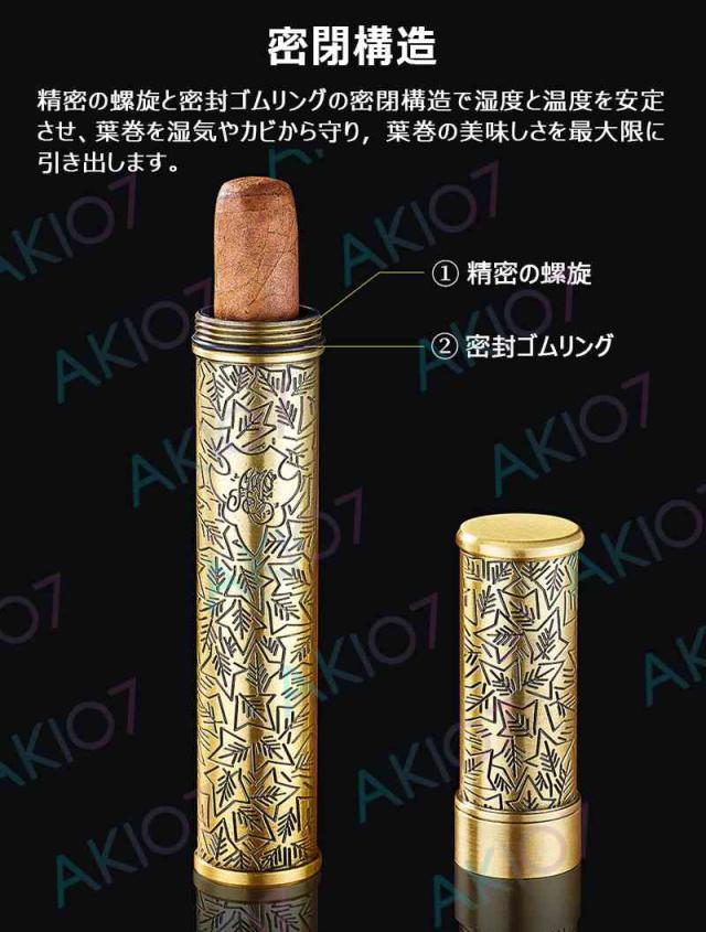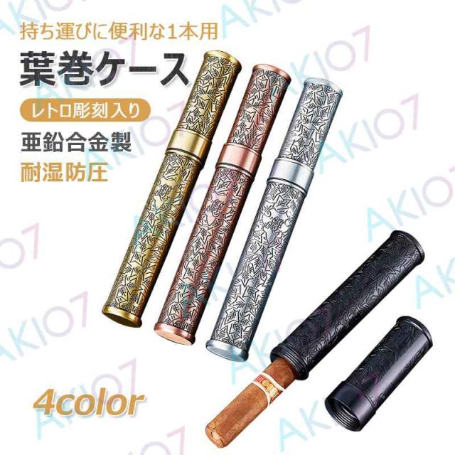 【レトロ彫刻入り・1本用】葉巻ケース シガーホルダーケース 亜鉛合金製 密閉構造 復古彫刻 耐湿防圧 浮彫りデザイン 味の保存 父親へのギフト 防湿 防カビ 持ち運び便利 誕生日 プレゼント 父の日