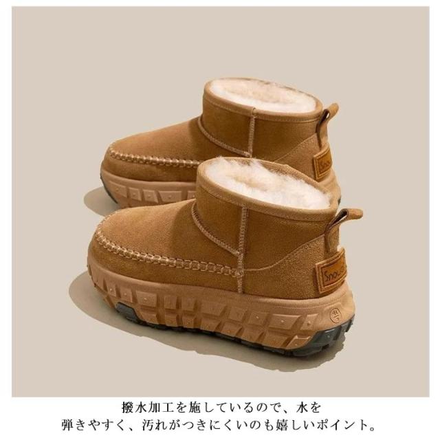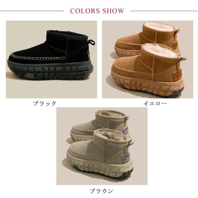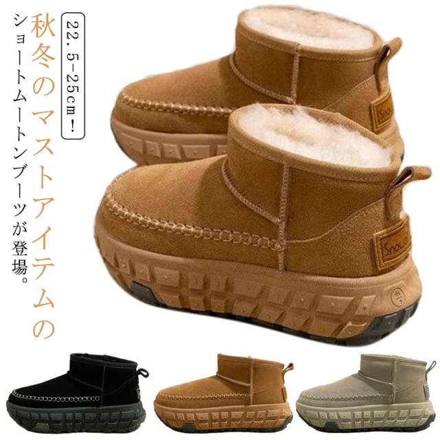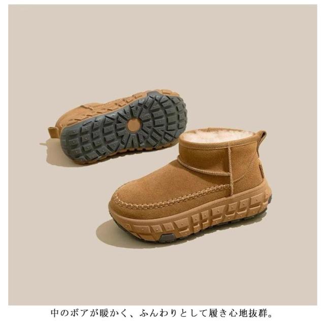裏ボア ショートブーツ 5cmヒール ムートンブーツ ムートンブーツ PUレザー スエード レディース ゆったり スノーシューズ ショートブーツ 厚底 インヒール 裏起毛 防寒 ブーツ ボアシューズ 保温 フラットシューズ