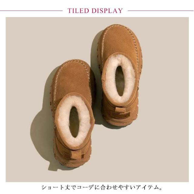 | 22.5-25cm!秋冬のマストアイテムのショートムートンブーツが登場。 ショート丈でコーデに合わせやすいアイテム。 中のボアが暖かく、ふんわりとして履き心地抜群。 撥水加工を施しているので、水を弾きやすく、汚れがつきにくいのも嬉しいポイント。 | |