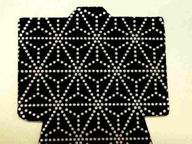 ミニ色紙 色紙 ハンドメイド 手作り 和風 正絹 掛け軸 タペストリー お土産 ハギレ 切り絵 作家 安田作 黒地 麻の葉 印伝調 色紙 ハンドメイド No.15
