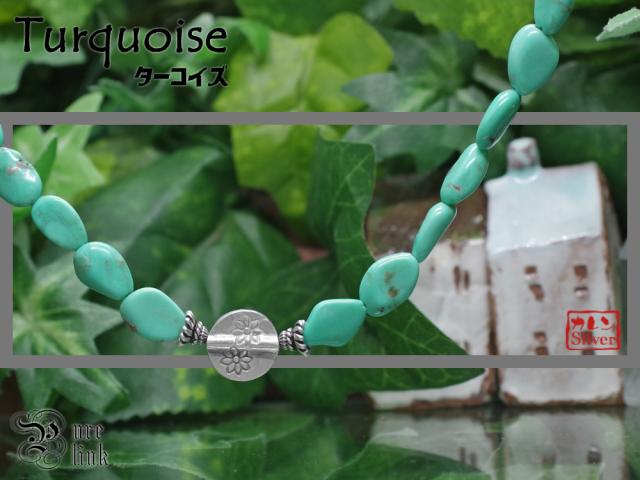 ターコイズ カレンシルバー花彫ネックレス《天然石/ハンドメイド》