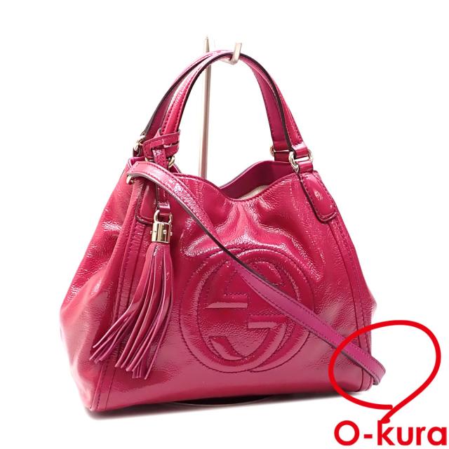中古 グッチ ソーホー ハンドバッグ レディース ピンク パテントレザー 336751 2WAY ショルダー 斜め掛け タッセル インターロッキングG