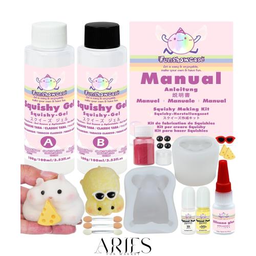 初心者向けの簡単な作り方:1.スクイーズジェルAとBを1:1の割合で混合します。2.好みによって顔料を加えてかき混ぜます。3.モールドに流し込んで2時間を硬化させます。4.完成!おまけのフロッキングパウダーを加えると、ふわふわな手触りになって可愛いでたまらないです!モチモチ気持ち良すぎてずっと触りたいです♪包装用自粘着バッグに入れてキャンディバッグも作れます!
