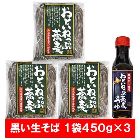 蕎麦 おといねっぷ蕎麦 生そば 送料無料 音威子府そば 生蕎麦 北海道産 そば粉 使用 おといねっぷそば 生麺 1袋(150g×3食)×3袋 オリジナル 蕎麦つゆ おといねっぷ そばつゆ 付き 黒いそば 麺類 そば