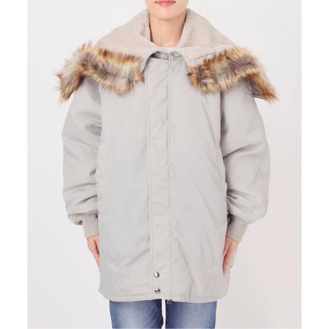 フードにつくファーはリアリティを追求したエレガントなフェイクファーを使用。