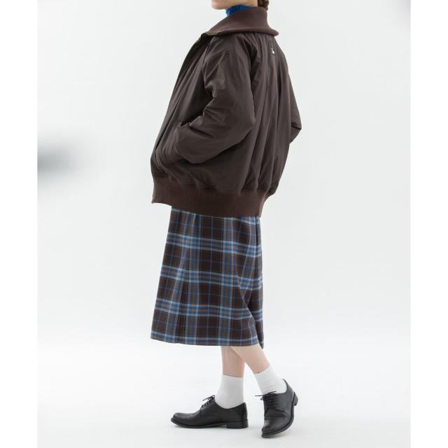 短めの7分丈ですっきりと着られ、深い股がリラックス感もあるガウチョパンツです。ポリエステルレーヨンで扱いやすいチェックで仕立てました。右後のスワンネームがワンポイント。ウエストはゴム仕様・内紐付きでリラックスして履いて頂けます。両サイドポケットつき。