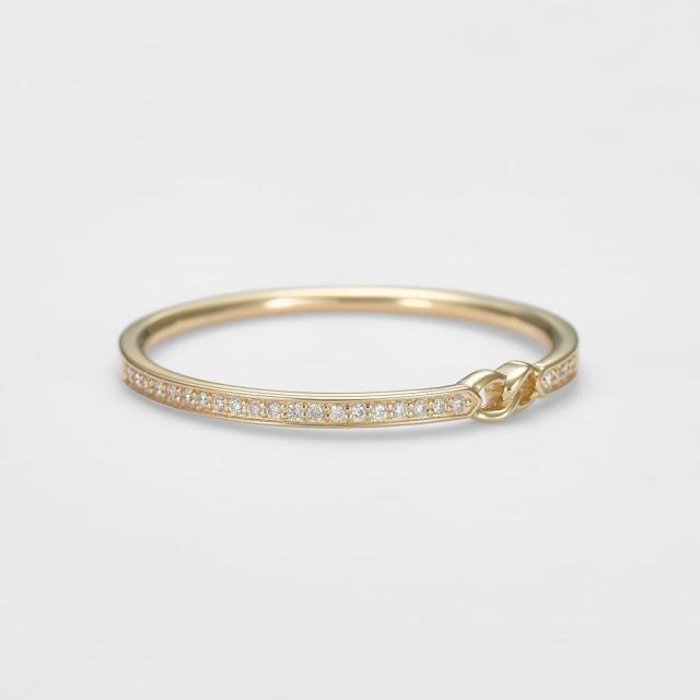 絆を象徴する、ミニマルジュエリー。煌めくダイヤモンドをあしらった、ベーシックなリングです。ミニマルなデザインの中に、輪を繋げたモチーフをワンポイントで取り入れ、「絆」を表現しています。シンプルながらも個性が光るディテールが、日常のスタイルにさりげない華やかさをプラス。繊細な輝きが、毎日に華やかさを添えてくれます。※天然石や天然素材を使用しているものは、サイズ・色味・風合いの違いや、若干の傷、内包物の有無などに個体差があります。予めご了承ください。※サイズ直しプラスマイナス2号迄。