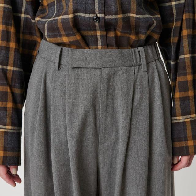 毛ポリエステルレーヨンブレンド ワイドタックパンツ