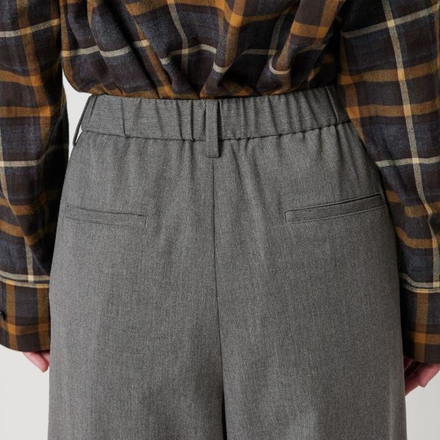 すっきりとした腰周りにウエストはゴム仕様で、リラックスしたはき心地と品のあるカジュアルスタイルを両立してくれます。