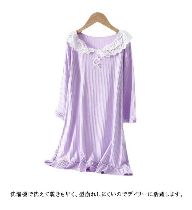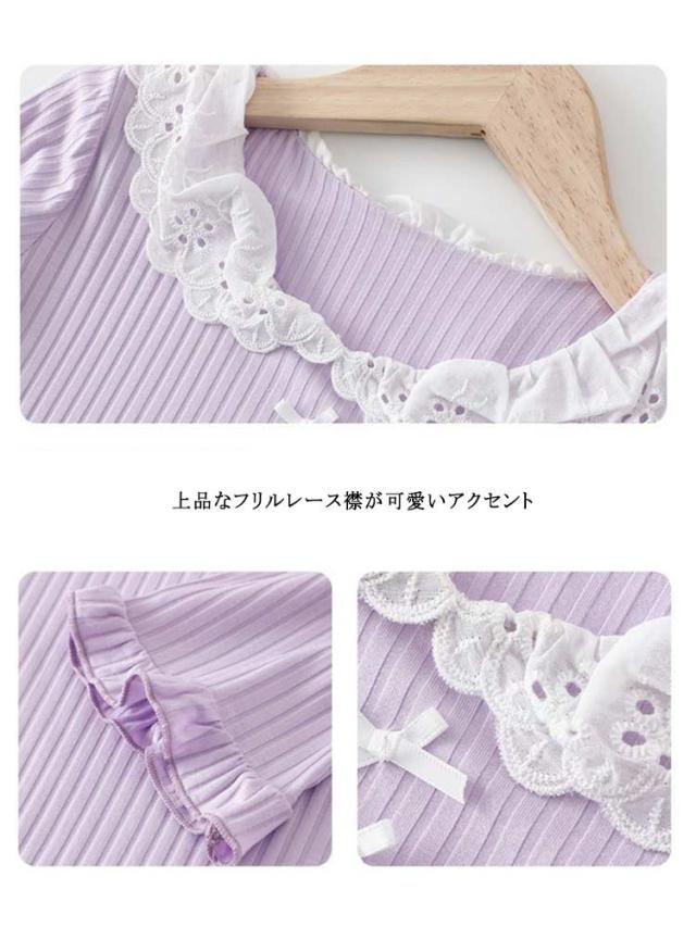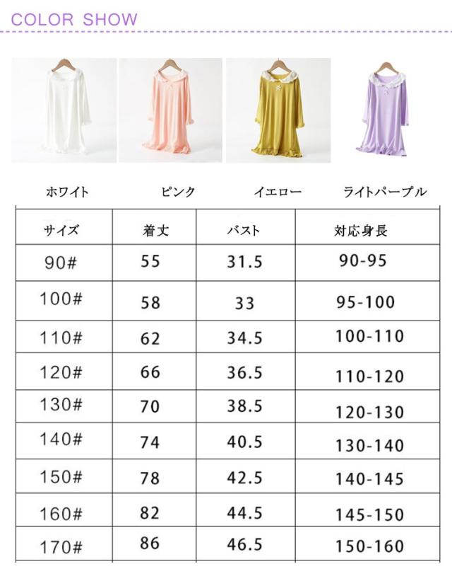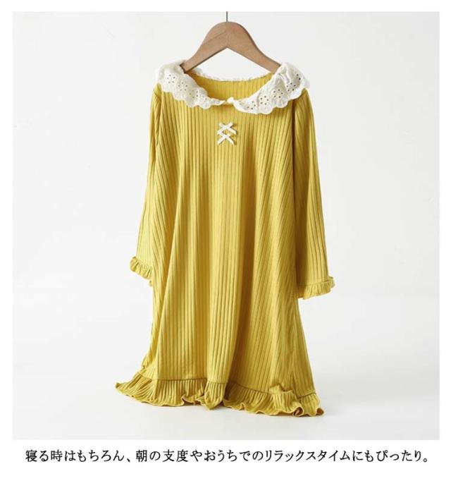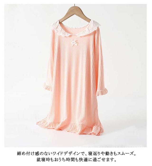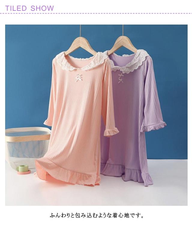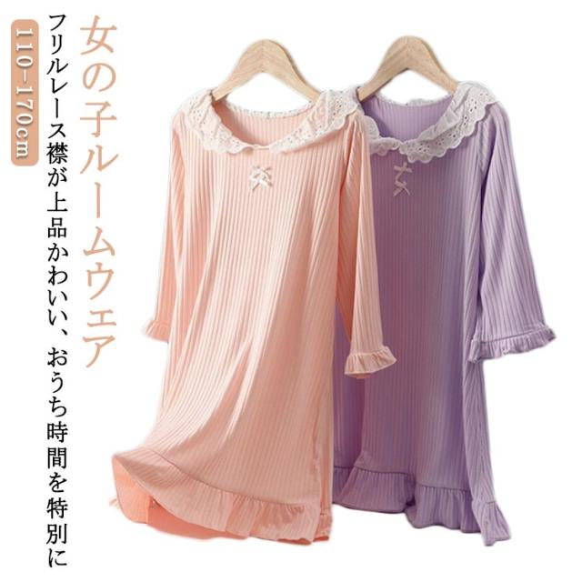 子供服 女の子 春 長袖 ワンピース 襟付き ルームウェア 秋 ナイトウェア ガールズ パジャマ シンプル ネグリジェ 寝巻き 冬 レース襟 可愛い 無地 柔らかい 部屋着 おしゃれ ナイトウェア プレゼント ギフト 小学生