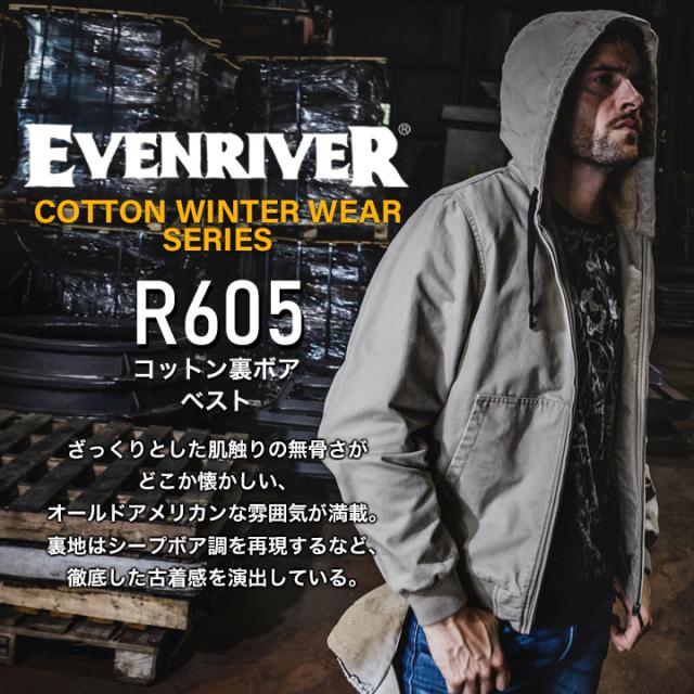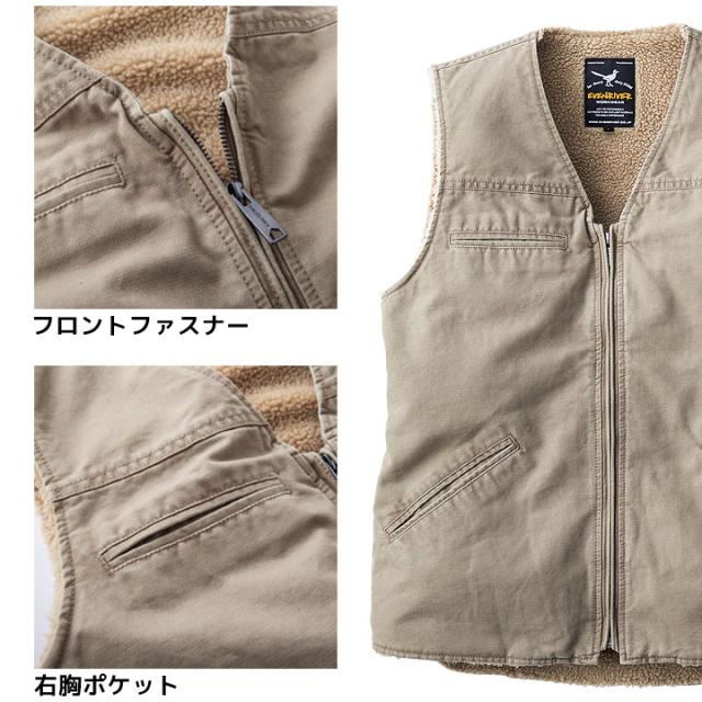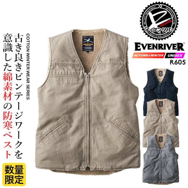 イーブンリバー 防寒ベスト 2025AW新作 数量限定 R605 綿100% 裏ボア 耐久性 保温 アウター ビンテージ風 アウトドア スポーツ 通勤 秋冬春 移動 自転車 バイク 防寒服 作業服 作業着 EVENRIVER