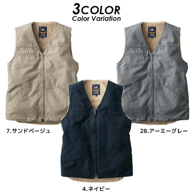 表は綿100%・裏地はシープボア調を再現しこなれた古着感の防寒ベスト。