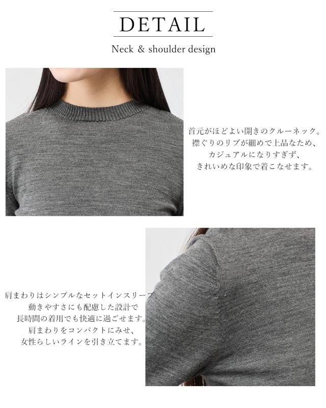 【ホールガーメント】日本製 メリノウール クルーネック ニット セーター プルオーバー 長袖 縫い目の無い 3D KNIT レディース クルーネック 長袖ニット トップス ウール100 毛100 30代 40代 50代 60代 秋 冬 暖かい 部屋着 重ね着 レイヤード 軽やか 快適