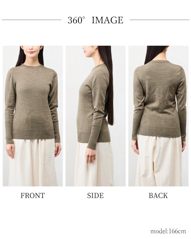 秋冬アイテム ホールガーメント クルーネックニット 長袖 丸首 あったか 暖かい 防寒 秋服 冬服 毛 ウール 毛100% ウール100% 3DKNIT カジュアル ナチュラル シンプル 快適 レディースファッション ファッション 人気 通販 服 日本製 SPAN スパン