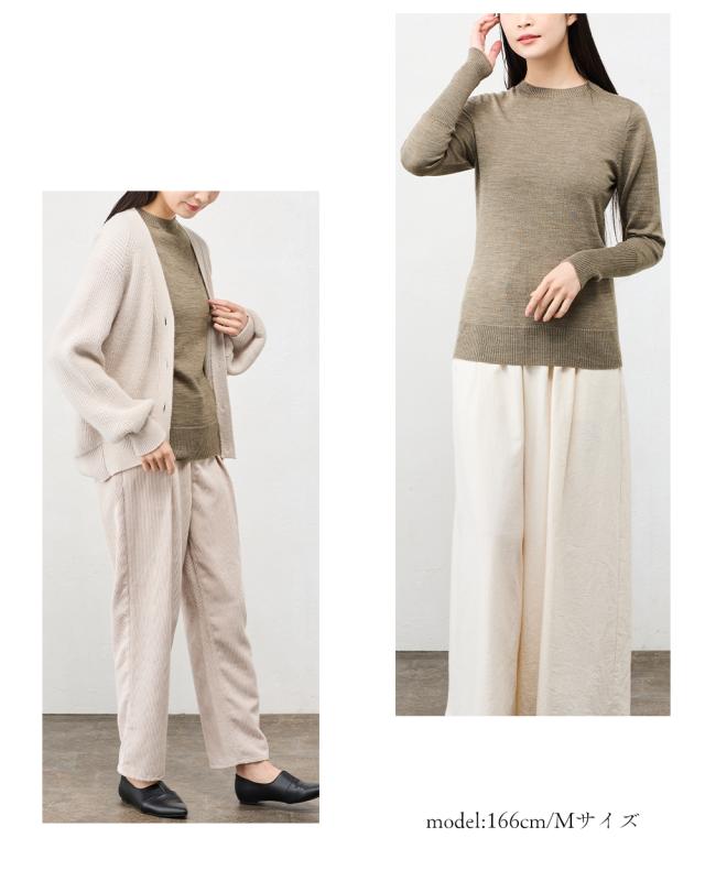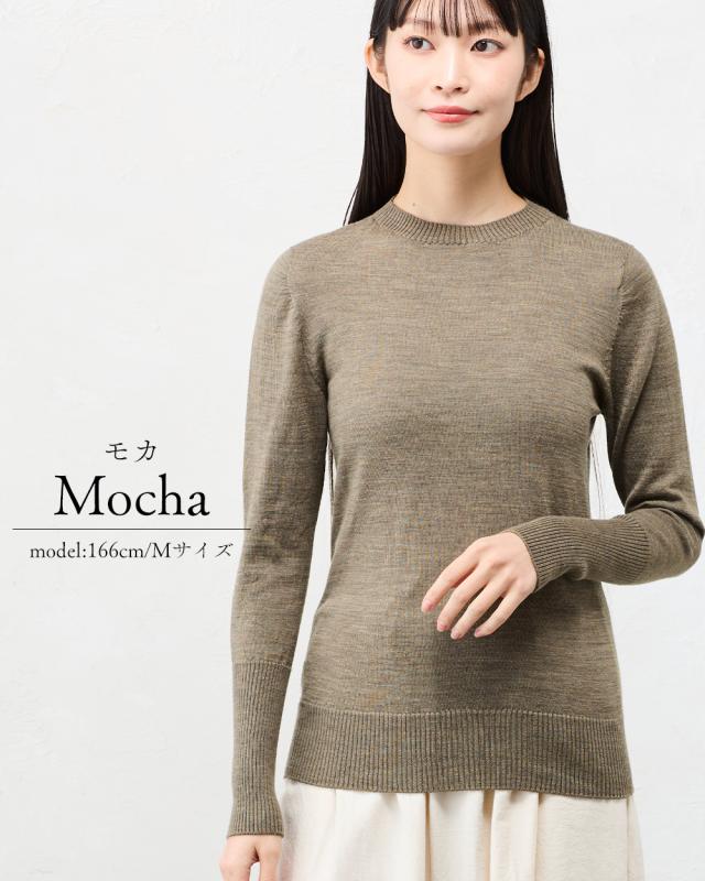 程よく抜け感のある丸首ラインが顔まわりを優しく見せ、合わせるボトムやアウターを選ばず、毎日のコーディネートに取り入れやすいのが魅力。