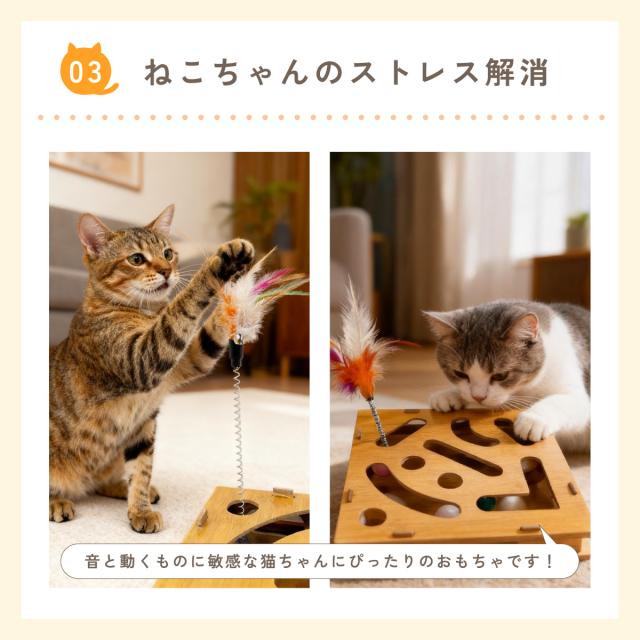 猫ちゃんの遊びたい本能・狩猟本能・好奇心をしっかり刺激して、ストレス発散・運動不足解消にも役立ちます。