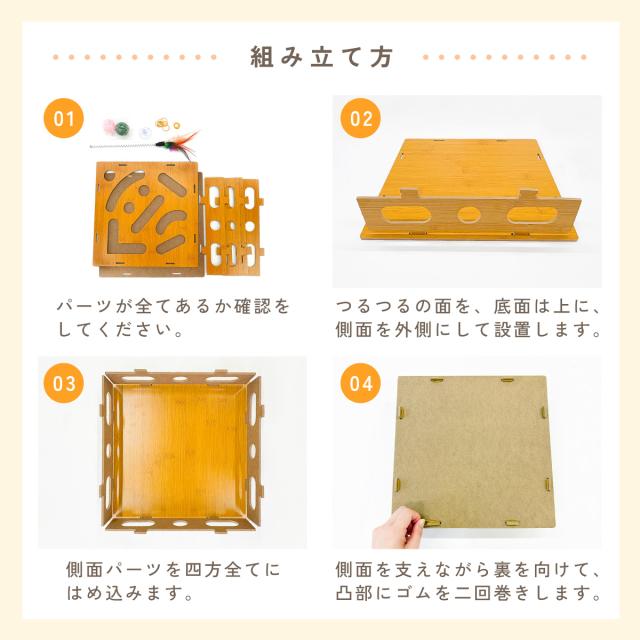 工具不要でサッと組み立てられる、猫ちゃん用おもちゃボックスです。