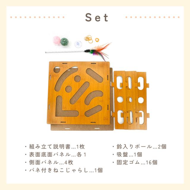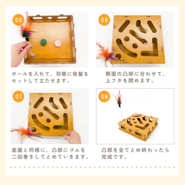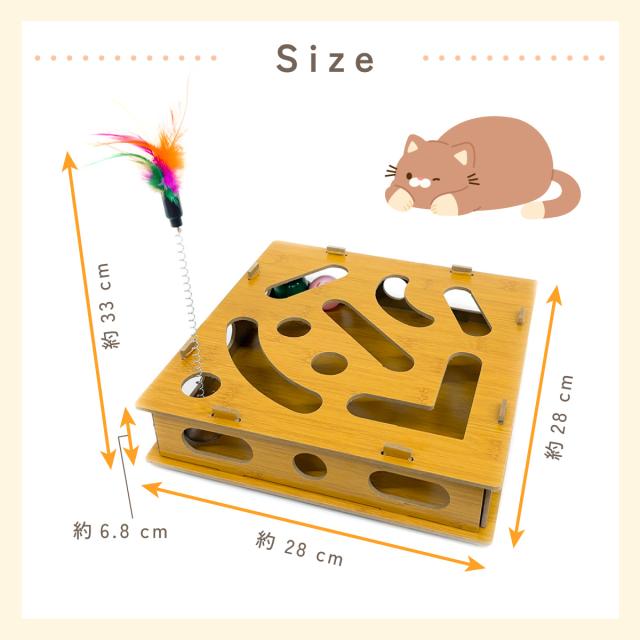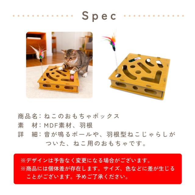 ねこのおもちゃボックス 猫 おもちゃ 知育トイ 猫じゃらし付き 工具不要 組み立て簡単 ストレス解消 運動不足対策 音が鳴るボール 羽根付き MDF素材 pet-toy-box