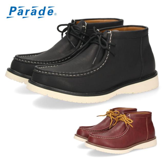 ブーツ メンズ モカシン 防水 カジュアル モカシンブーツ ブラック ブラウン 黒 茶 靴 レースアップ 通勤 通学 普段使い ショートブーツ ファッション かっこいい おしゃれ パレード 4831 Parade