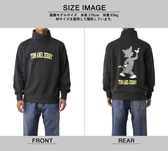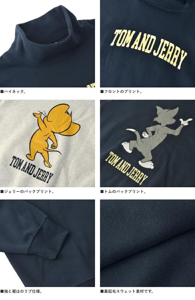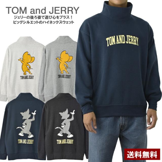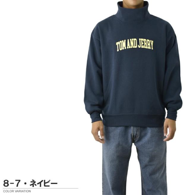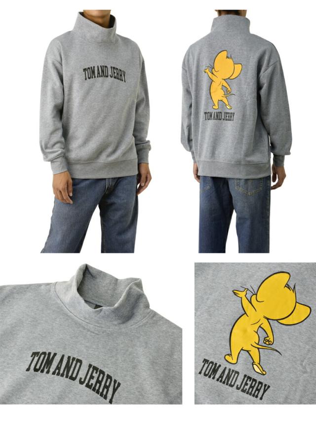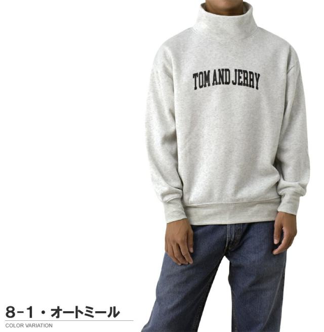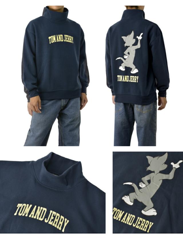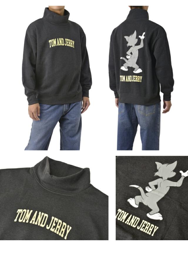 トレーナー メンズ スウェット ハイネック 裏起毛 Tom and Jerry トムアンドジェリー ビッグシルエット 前後プリント バックプリント タートルネック【B7D】【パケ1】【A】