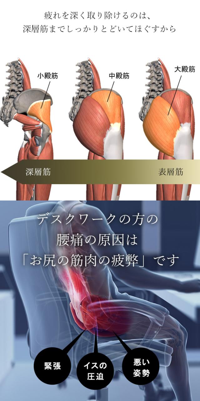 コリが気になる部分に商品を当てて、ゆっくりと自重をかけてください。
