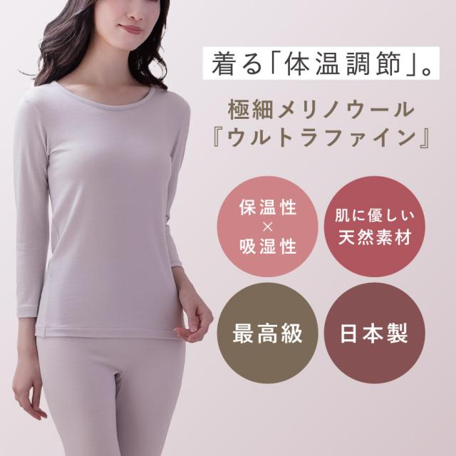 メリノウール インナー 登山 レディース ウール100% 日本製 インナーシャツ チクチクしにくい 暖かい 冬 8分袖 肌着 あったか ウルトラファインメリノインナー 8分袖シャツ 60代 70代 80代 あったか 防寒 寒さ対策 冷え対策 冷え性 重ね着 ギフト 誕生日