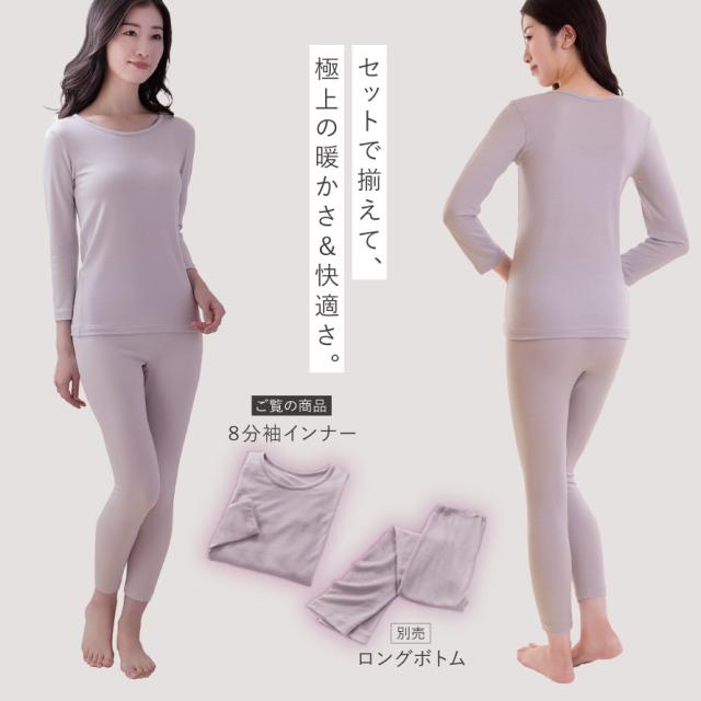 伸縮性があり体に心地よくフィット。8分袖でアウターに響かず、すっきりとしたシルエットに。