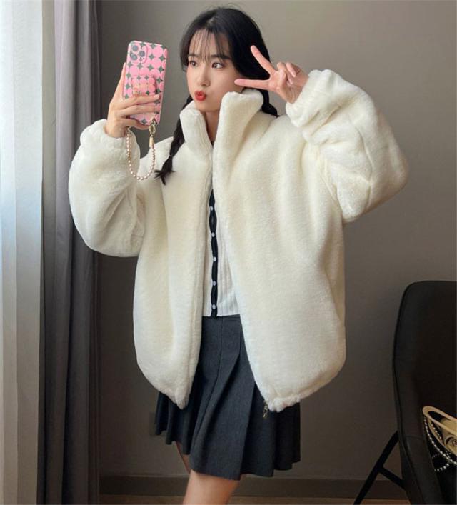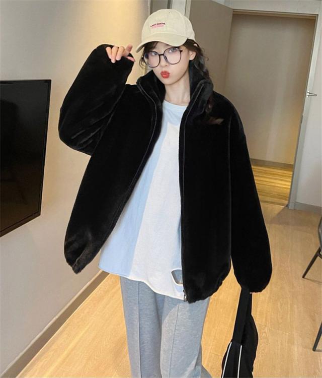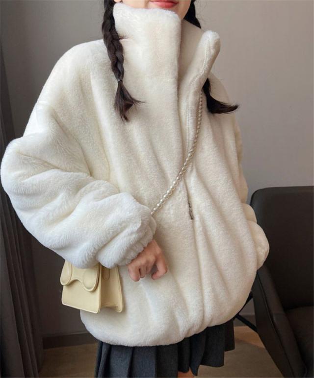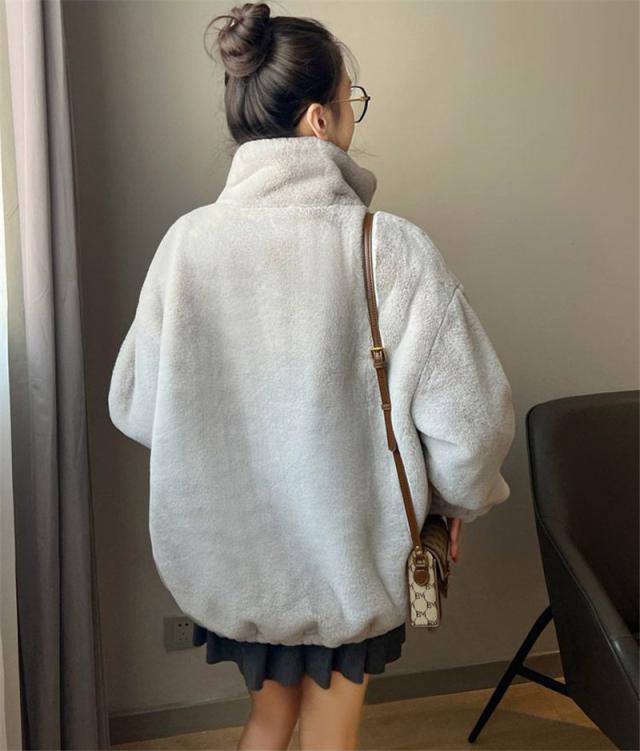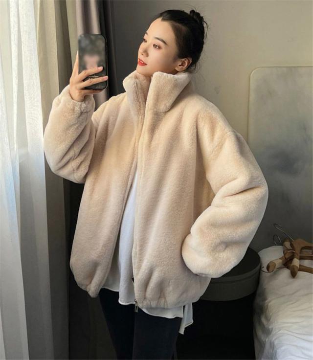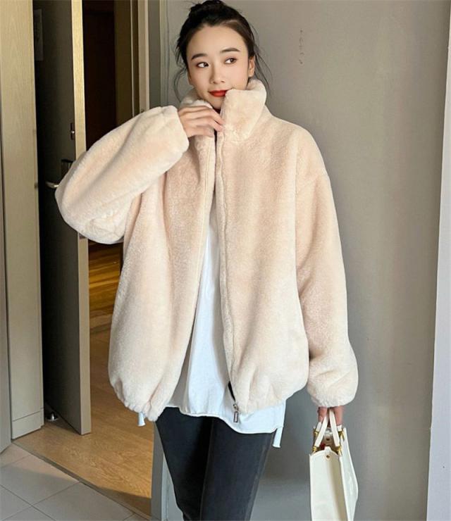 フリースジャケット レディース ボア パーカー ブルゾン アウター もこもこ ファー ゆったり 厚手 暖か 防寒 冬 体型カバー 送料無料 オシャレ 可愛い