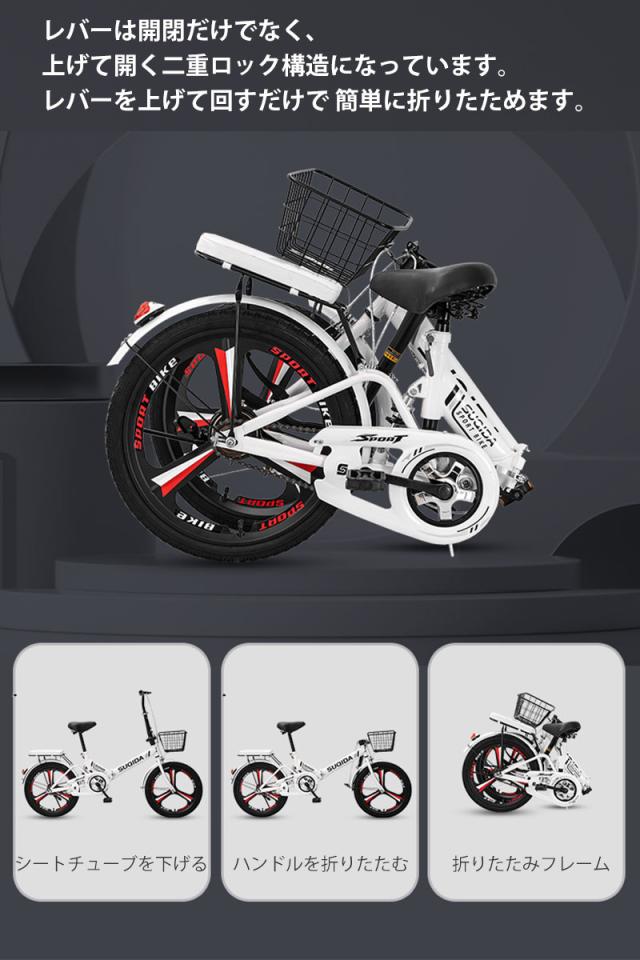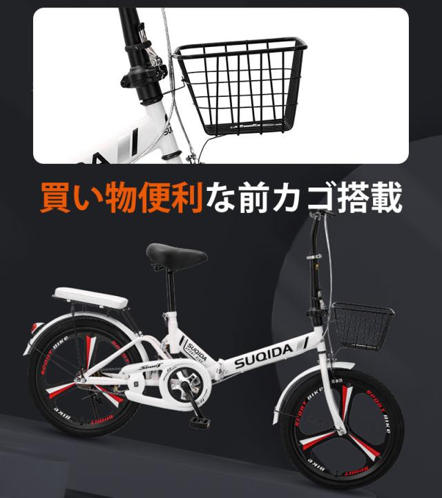 送料無料 折りたたみ自転車 20インチ カゴ付き 6段変速 フロントライト カギ 玄関先 車載 軽量 新生活 通勤 通学 シティサイクル 買い物 街乗り
