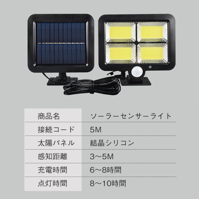 送料無料 ソーラーライト センサーライト 屋外 led 防水 人感 分離式 充電式 明るい ガーデンライト 壁掛け 防犯灯 室内 照明器具 投光器 作業灯 ポイント利用