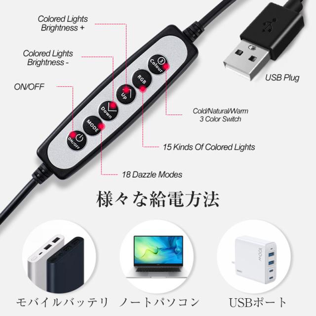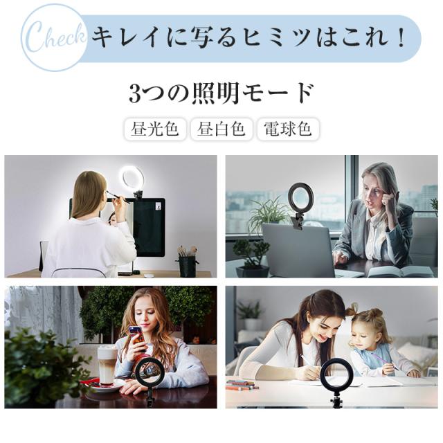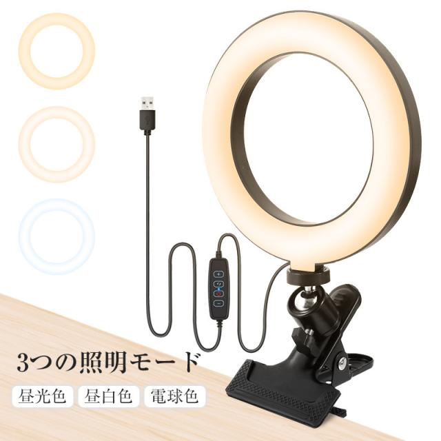 送料無料 リングライト クリップタイプ PC led付き 自撮りライト スマホ 自撮り ライト tiktok 動画 配信 撮影 テレワーク