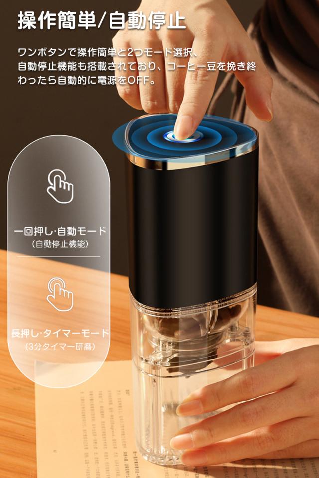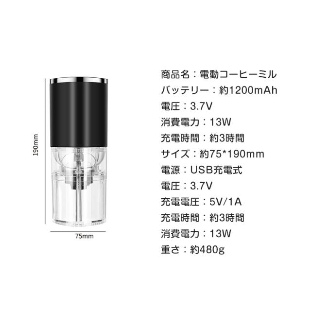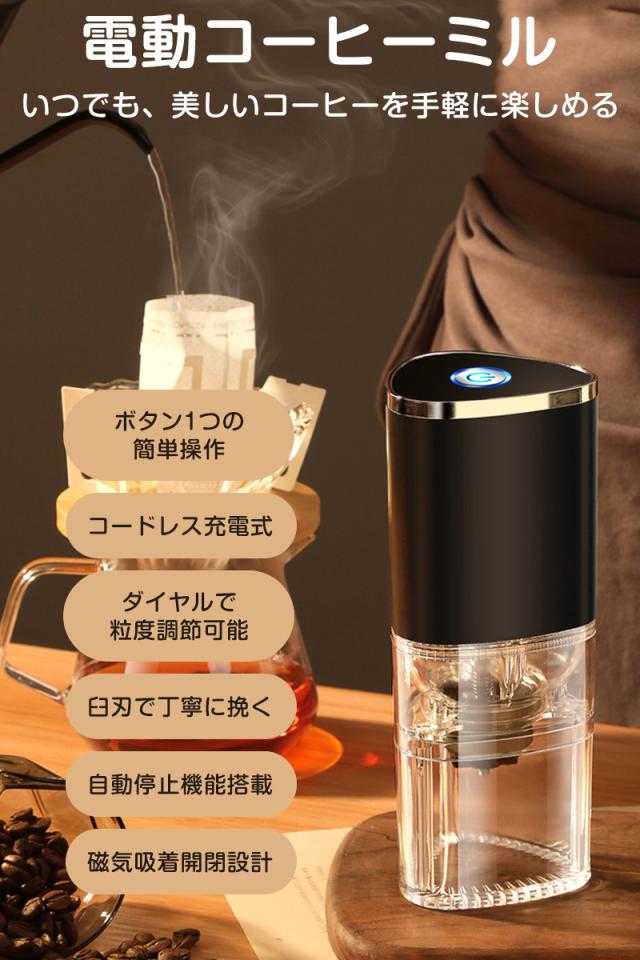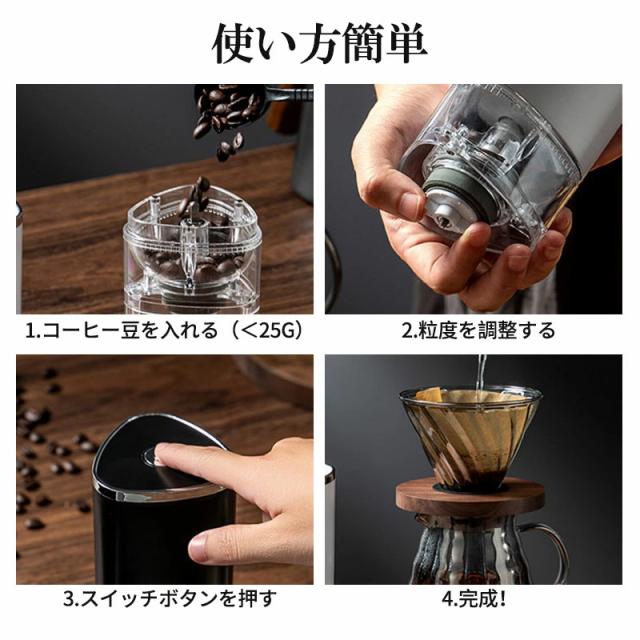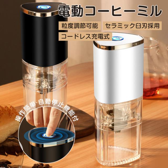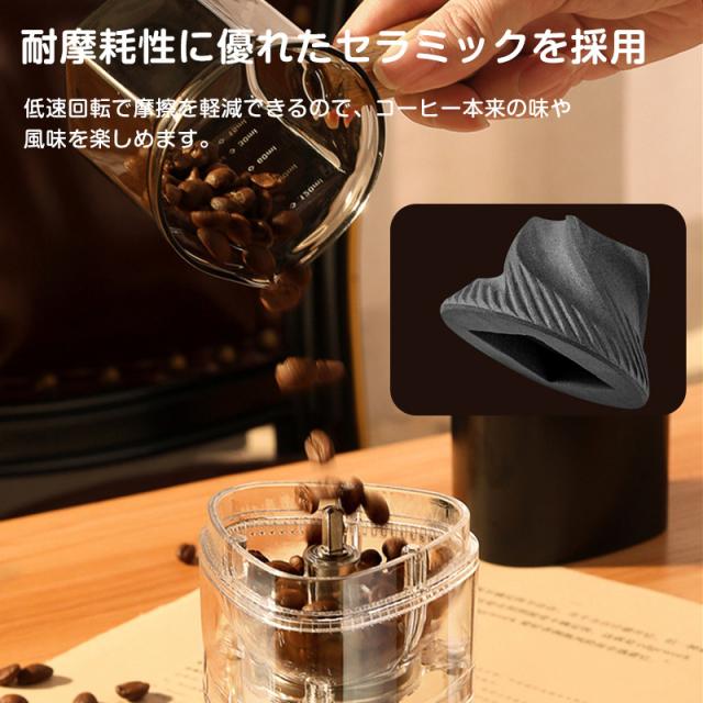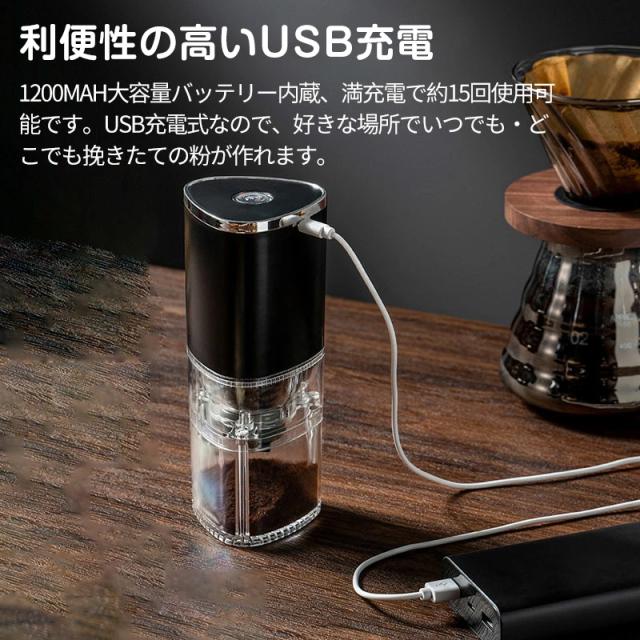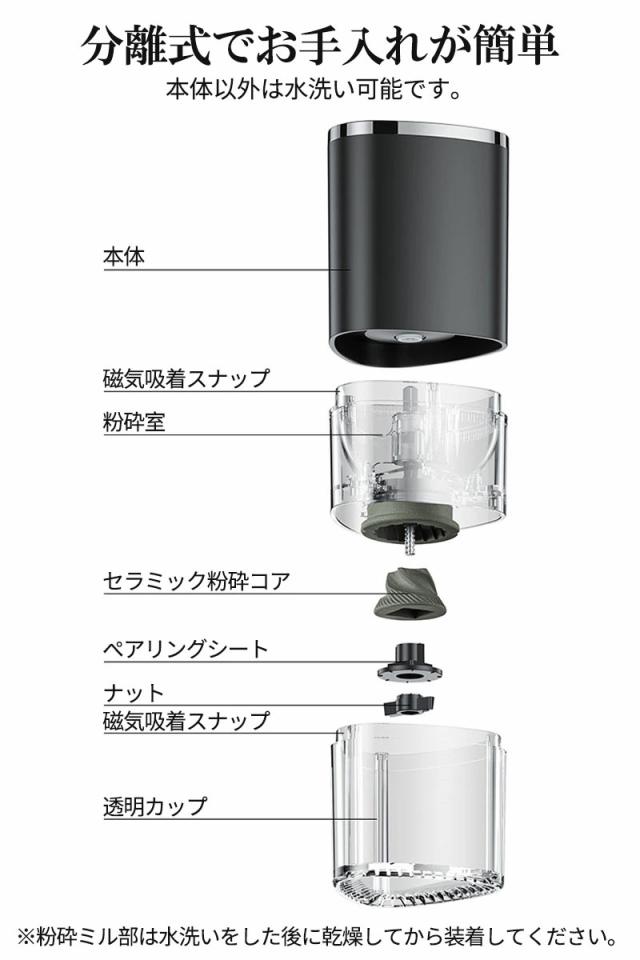 送料無料 電動コーヒーミル 臼式コーヒーミル コードレス USB充電式 電動ミル 分離式 珈琲ミル コンパクト セラミック刃 豆挽き機 水洗い可 磁気吸着