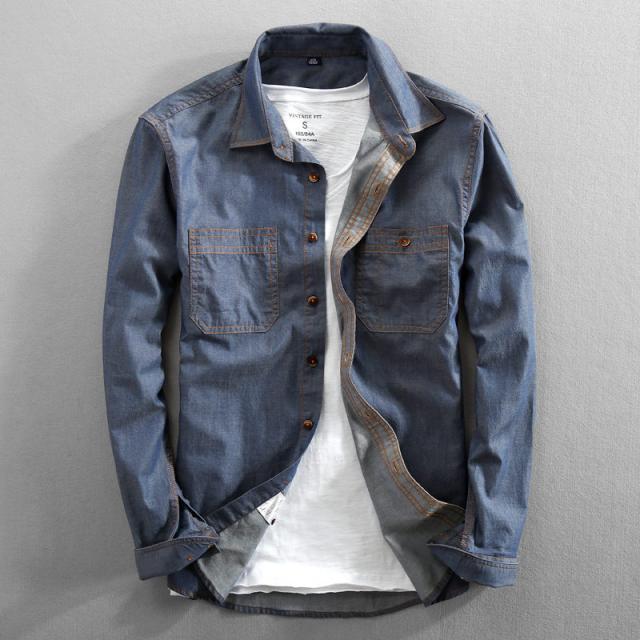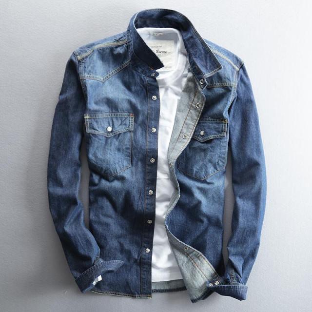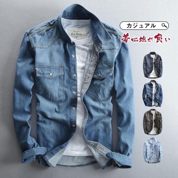デニムシャツ メンズ 長袖 カジュアル 綿 ウォッシュ加工 開襟 カジュアルシャツ デニム 新作 トップス かっこいい メンズファッション