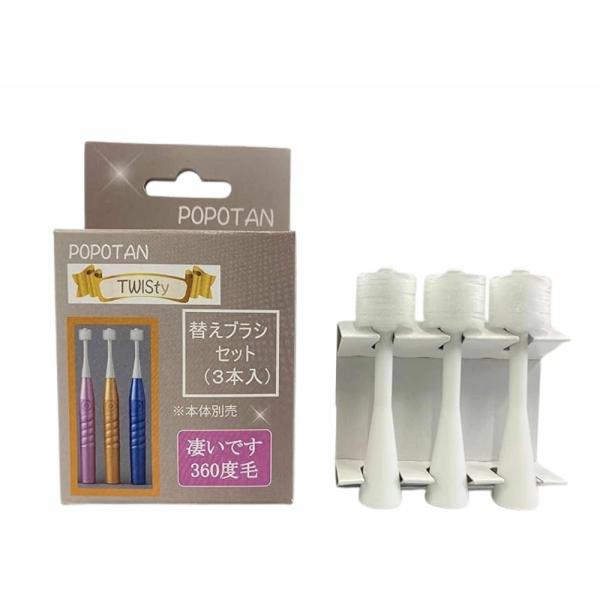 ポポタン ツイスティ 替えブラシ 3本入 POPOTAN TWISty ホワイト 電動歯ブラシ用 360度毛歯ブラシ 歯磨き後スッキリ むし歯予防の セルフデンタルケア