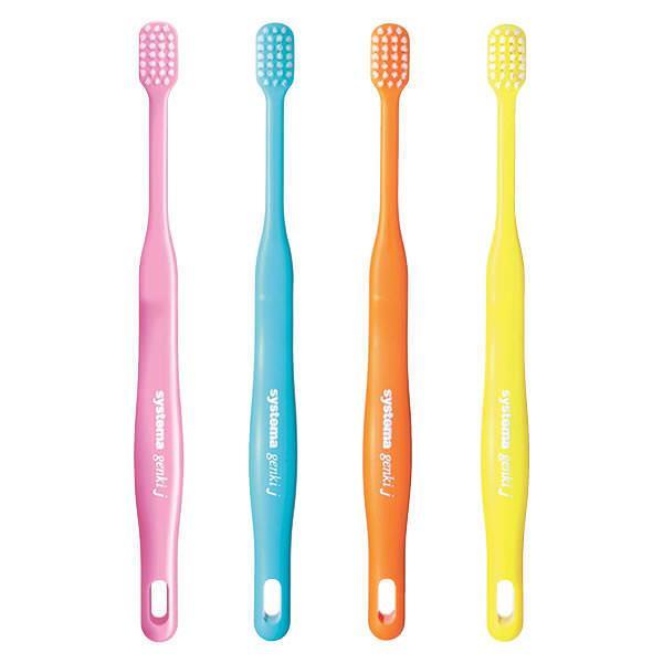 接触面積が広く磨き残しが少なくなる幅広ヘッドと、歯肉に優しいソフトなスーパーテーパード毛を備えた「混合歯列後期からの歯肉炎ケア」に適したハブラシです。若年者の口腔サイズに合わせた短めの毛丈です。