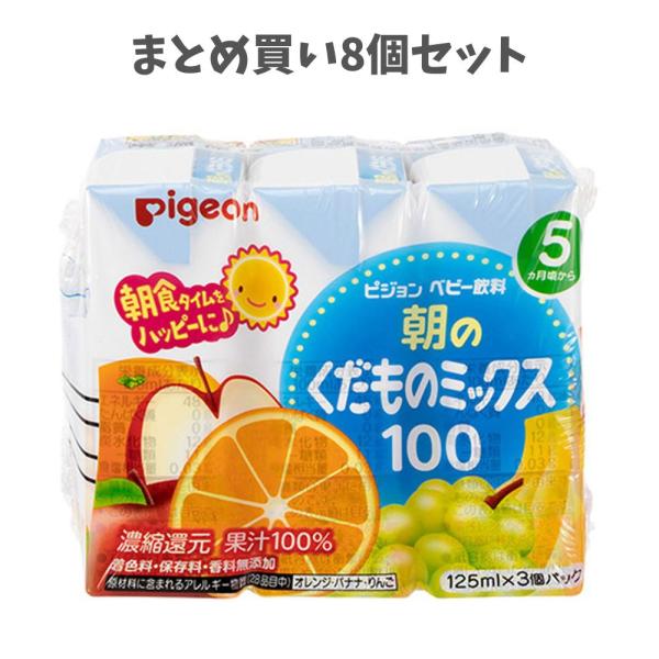 【まとめ買い8個セット】ピジョン 紙パックベビー飲料 朝のくだものミックス100 125mL×3個パック 赤ちゃんのジュース ベビー飲料