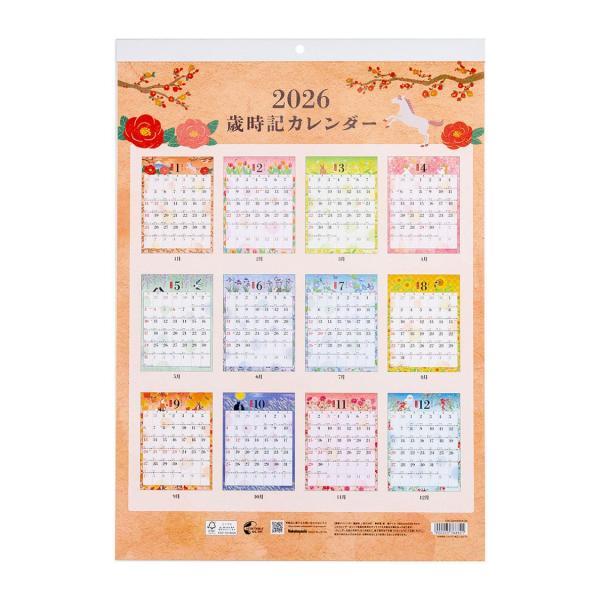 【ナカバヤシ】壁掛けカレンダー2026 歳時記/四六4切 (COC-CLH-B3SA-26) 季節のイラスト 2026年カレンダー おしゃれ 壁掛け