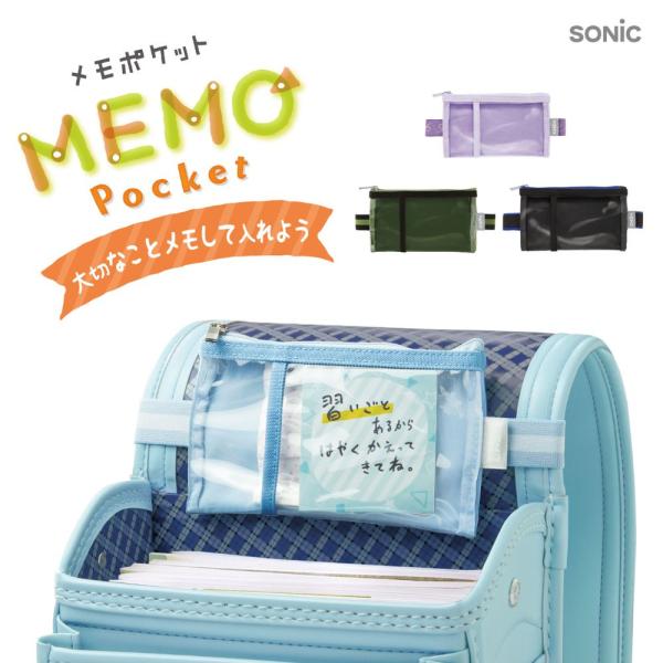 【ソニック】メモポケット ランドセル用 (GS-5557) ブラック(D) バイオレット(V) ライトブルー(LB) グリーン(G) うっかり防止 忘れ物対策 小学生 うかサポ