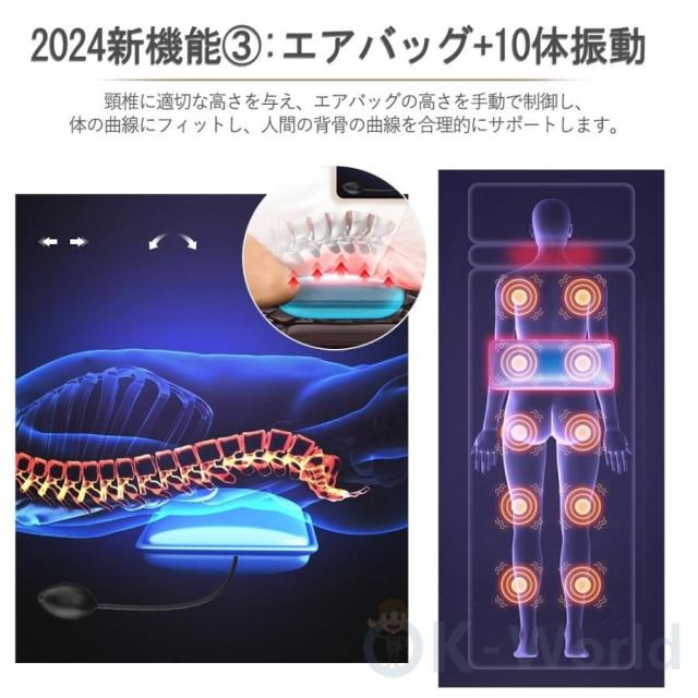 【機能3:エアバッグ+10体振動】:頸椎に適切な高さを与え、エアバッグの高さを手動で制御し、体の曲線にフィットし、人間の背骨の曲線を合理的にサポートします。