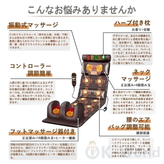 マッサージシート 寝ながら 椅子 多機能 マッサージ器 シート 座椅子 マッサージャー マッサージ機 ヒーター 全身 首 腰 肩 疲労回復 ふくらはぎ 軽量 折りたたむ 持ち運び便利 家庭用 プレゼント 父の日 贈り物 肩こ背中 椅子 母の日