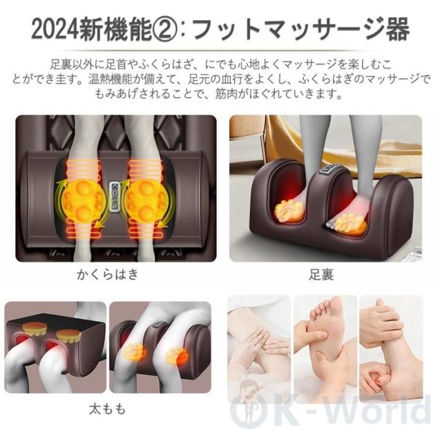 【機能2:フットマッサージ器】:足裏以外に足首やふくらはざ、にでも心地よくマッサージを楽しむことができ圭す。温熱機能が備えて、足元の血行をよくし、ふくらはぎのマッサージでもみあげされることで、筋肉がほぐれていきます。