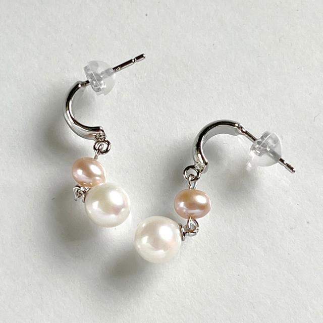 あこや真珠と淡水真珠を大小1個ずつ使用し、輝く輝度と上品さを兼ね備えています。キャッチにはシリコンを使用しており、安定感のある装着感が特徴です。大切な方へのプレゼントにもおすすめです。結婚式やパーティーなど特別な日に、華やかな輝きを添えてくれます。
