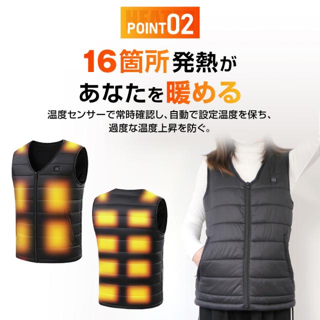 2025最新 版電熱ベスト ヒーターベスト ヒーター16枚内蔵 日本製複合繊維 ヒートジャケット 速暖 超軽量 電熱ジャケット 3段温度調整 防寒ベスト 発熱ベスト 電熱ウェア 水洗い usb